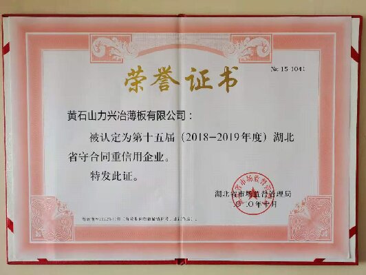 第十五届(2018-2019年度)湖北省守合同重信用企业
