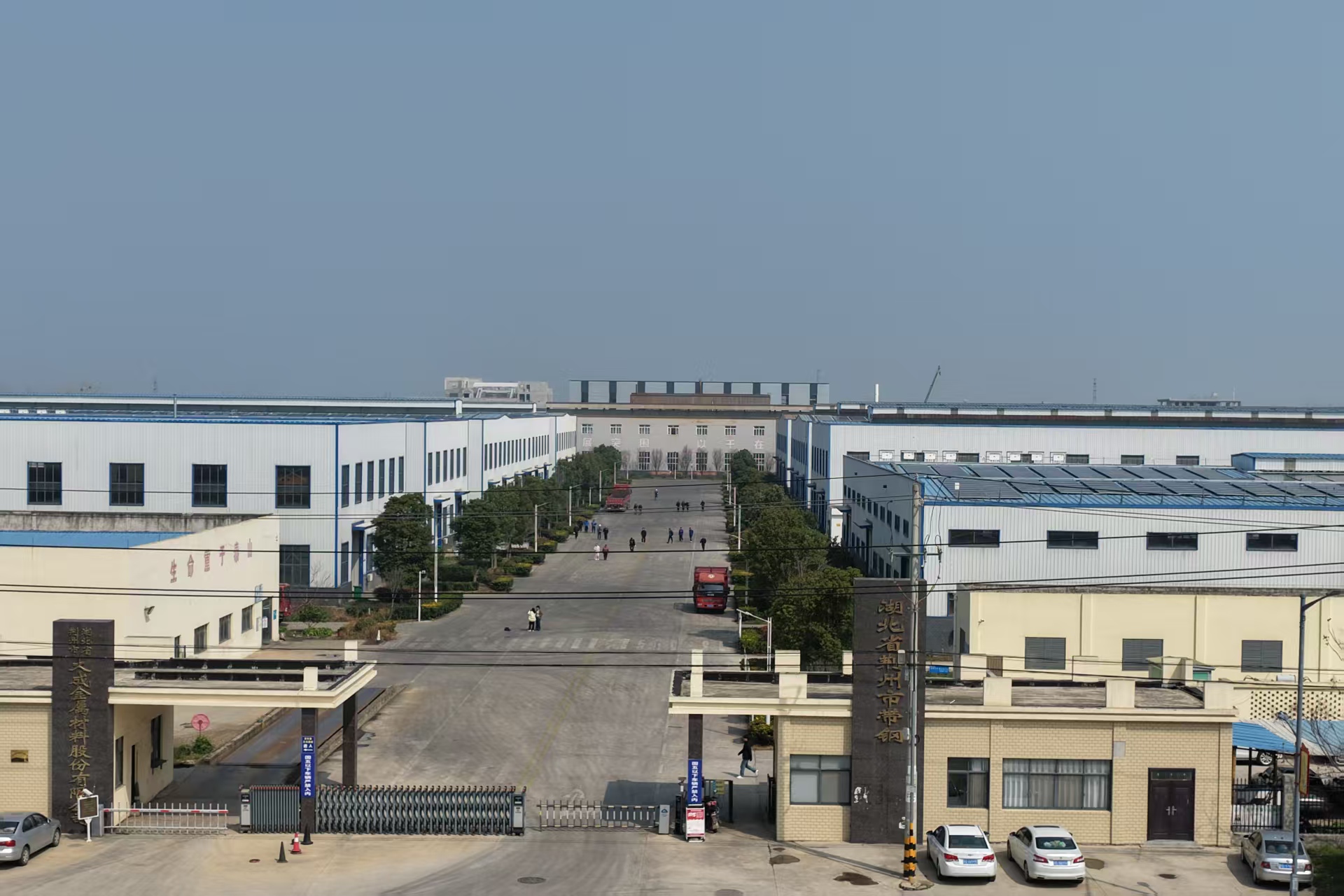 湖北省荆州市带钢厂占地面积600亩,具备年产30万吨钢材产品的能力。该厂厂房于2019年建成,采用山力兴冶公司海蓝色、白灰色彩色涂层钢板,总用量20万平方米。