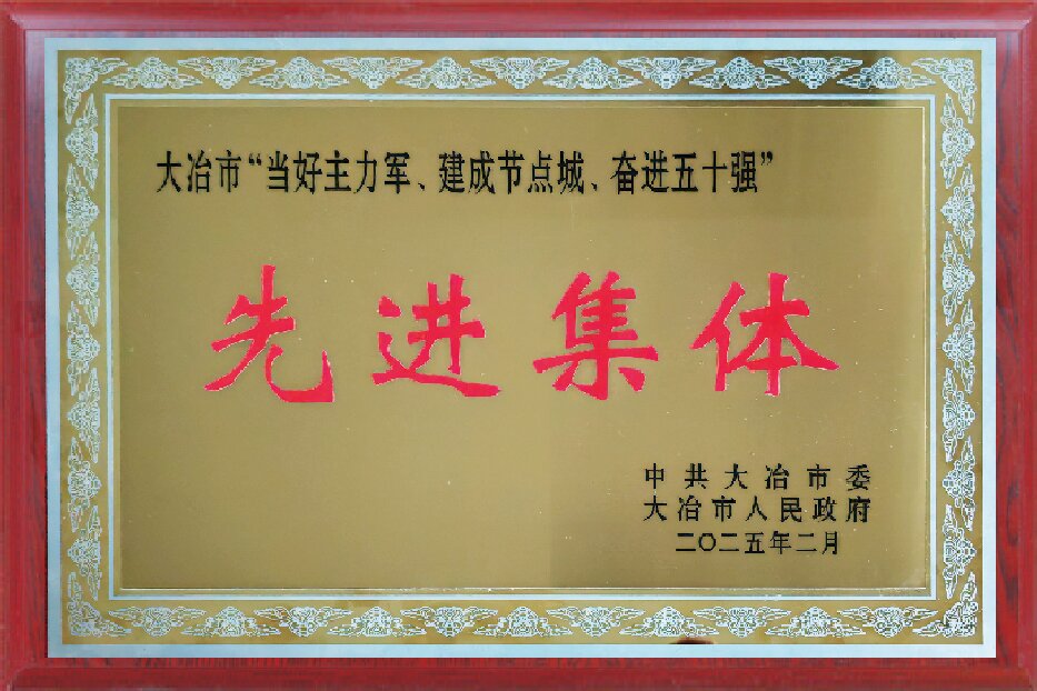 大冶市“当好主力军、建成节点诚、奋进五十强”先进集体