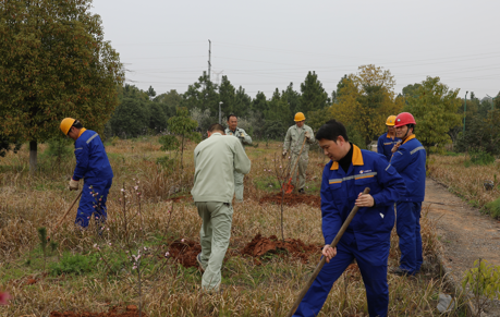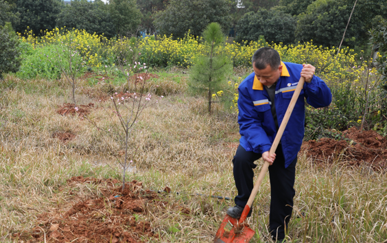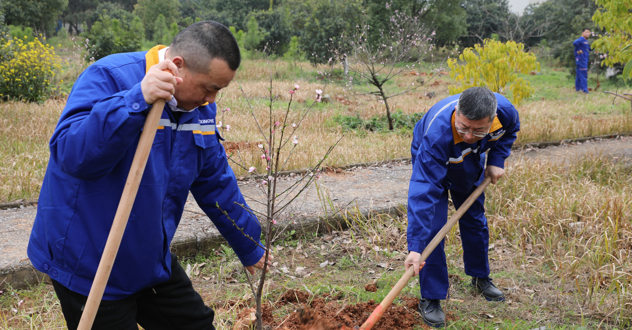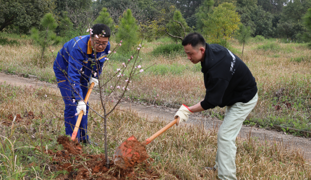 活动现场,大家分工协作、干劲十足,挥锹挖坑、扶苗培土,精心栽下一株株桃树苗,以实际行动为厂区增添盎然新绿。
